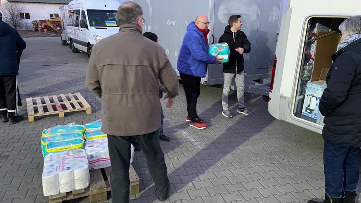 Bilder des letzten Hilfstransport an die ukrainische Grenze im März 2022